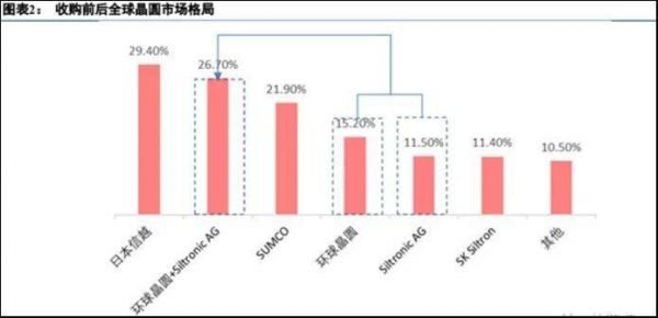 研究机构的统计数据显示,截至2020年9月,信越化学在全球硅晶圆制造市场的份额高达29.4%,稳居第一;日本胜高排名第二,市场份额为21.9%;中国台湾的环球晶圆排名第三,市场份额为15.2%;德国Siltronic AG 以11.5%的市占率排名第四;韩国SK Siltron排名第五,市场份额为11.4%。