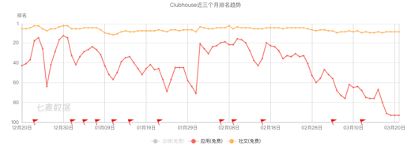 Clubhouse近三个月在App store的排名趋势