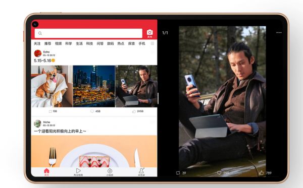 比如华为平板的平行视界,这个功能的思路就是把横排的屏幕一分为二,应用内容可以双屏显示,同时展示应用首页和内容页两个层级。这种做法的好处在于可以更加充分地利用屏幕面积、提升使用体验,同时不会大幅增加开发者的适配工作量。
