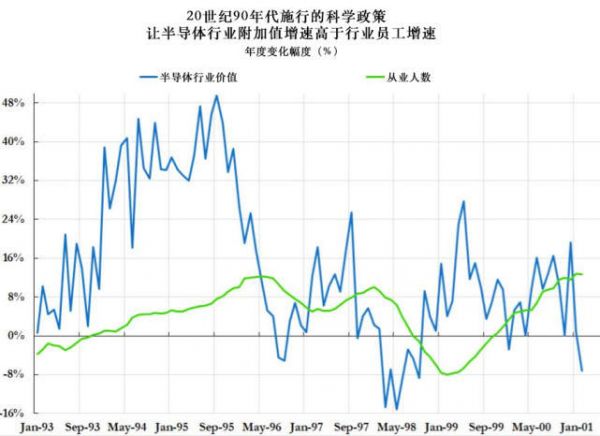 在20世纪90年代施行的科学政策下,半导体行业附加值的增速比员工增长更快