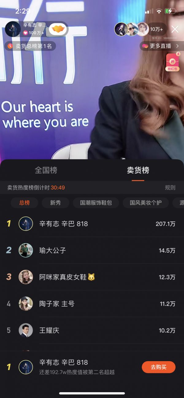 但不可否认的是,快手独特的老铁社区,使主播拥有着很强的粉丝粘性。一位资深快手用户向Tech星球介绍,辛巴就是靠在别人直播间刷礼物刷火的。换句话讲,辛巴是快手“秒榜机制”的受益者。快手早期很多红人都是靠打榜、PK火起来的。据悉,辛巴最开始在散打哥、初瑞雪等快手头部主播的直播间内狂刷礼物,曾创下三个月涨粉795万的记录。