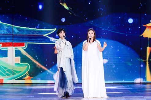 2020全民K歌年度盛典“荣耀女王”丛书(右)与郁可唯(左)同台献唱