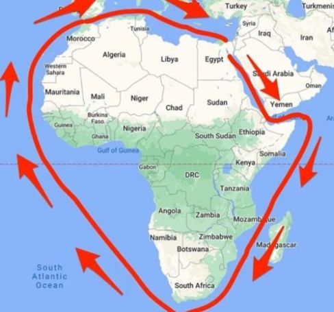 据报道,目前已经有多家集装箱航运公司表示正在考虑绕道南非好望角。通常情况下,货船从苏伊士运河前往荷兰阿姆斯特丹约需12天,而绕道南非好望角则需41天,航程增加约1万公里,且额外花费7百万兰特,约合近50万美元。