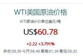 国际油价也大幅波动四天,周五双双涨超4%,美油WTI一度冲破61美元,随后回落。