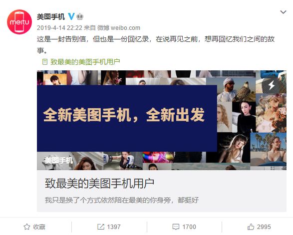 早在2018年时,美图手机就曾在官方微博上发表了《是说再见的时候了》的公告,公告中表示:“做一台让更多人变美的手机,所以它意味着小众,也意味着体量小,无法降低成本去迎合愈演愈烈的价格战,所以我们即将在年中关闭手机业务,将旗下美图手机的品牌独家授权给小米集团。”从此美图市场在手机市场上“名存实亡”。