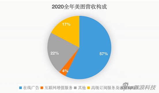 根据美图2020年公布的财报来看,美图57%的营收均来自广告业务,而互联网所带来的价值只有4%,足见其转型不够成功。