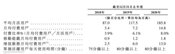 根据招股书,B站的月活从2018年的8700万大幅增加到了2019年的1.175亿,并进一步增长到2020年的1.858亿,依旧保持增长势头。此外,2020年单个活跃用戶平均每天花在B站上的时间保持在80分钟以上。