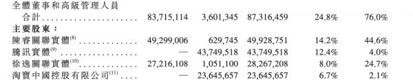 如今,B站背后股东阵容盛大。根据招股书,截至2021年1月31日,B站董事长兼CEO陈睿持股14.2%,拥有44.6%的投票权;腾讯持股12.4%,拥有4%的投票权;徐逸持股8%,拥有24.7%投票权,淘宝中国持股6.7%,投票权2.1%。