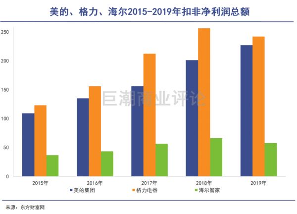 首先是高瓴资本与格力电器的组合。从扣非净利润的绝对值看,格力电器过去多年一直超过美的和海尔,这与空调的消费数量更多有很大关系,但格力长期“单吊”空调,近些年被美的不断挤压生存空间,却无法在多品类上与之竞争,最近两年的业绩情况并不理想。