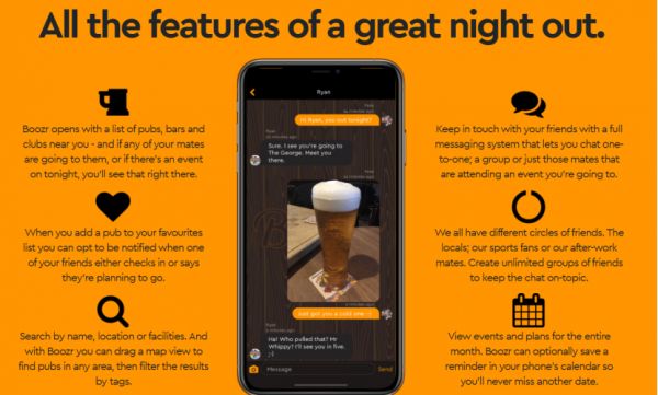 Boozr 的创始人 Pete Shaw 是一位 54 岁的英国人,他在此前接受媒体采访时曾表示,“早在三年前就有了做 Boozr 的想法,但是直到 2020 年新冠疫情来临才真正把想法落实下来。因为新冠疫情的原因,致使很多酒吧倒闭或者未能正常营业,于是我们经常会乘兴而来败兴而归,于是就想把 Boozr 开发出来让我们不再跑空,朋友们也能方便地聚集在一起”,于是也就有了 Boozr。Boozr 目前的主要功能包括: