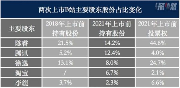 不过巨头的到来,没有稀释原管理层的控制权。2018年上市时,B站管理团队在重大决策中的投票权超过80%以上,现在,除陈睿、徐逸、李旎三位核心成员,其余人员虽都有所变动,整体而言管理层对B站仍拥有绝对控制权,比如陈睿、徐逸分别保有44.6%、24.7%的投票权,而腾讯、淘宝分别仅为4%、2.1%。