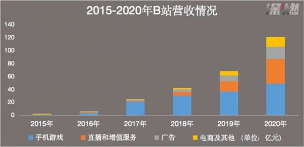 在2020年Q4,增值服务营收反超游戏,成为B站第一大盈利支柱。一度被诟病不健康的营收占比明显改善:2017年移动游戏、直播和增值服务、广告营收占比,分别为83.4%、7%、6.5%,到了2020年,移动游戏占比下降至40%,直播和增值服务上涨至32%,广告占比也上涨到了15.4%。