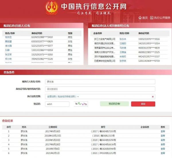 ▲中国执行信息公开网截图