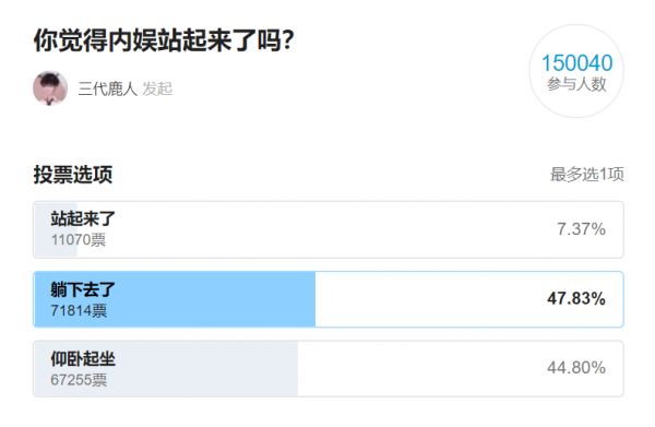 而影视UP主@三代鹿人堪称是《创4》播出后的吐槽先锋,《创造营2021全员拉胯?我从来没见过这么好笑的综艺!》观看量至今已超642万,全站最高排行第3,在该节目解说下方,“你觉得内娱站起来了吗”投票超15万人参加,蹭足了开播阶段“内娱要完了”的营销热度。