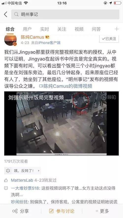 4月23日18:02,微博用户@陈纯Camus发布微博,称从Jingyao处取得了完整视频和发布授权。
