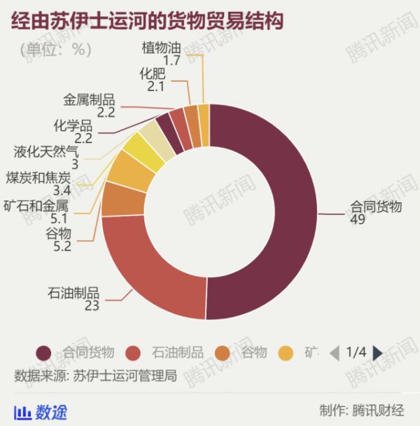 此外,谷物是经苏伊士运河运输的第三大货物类型,这类物品主要是从欧洲的乌克兰等国,南向运输到亚洲的中国、印度和新加披。