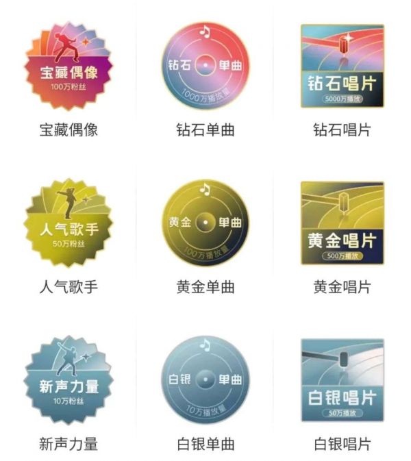 比如,网易云音乐的评论区一直是该平台一大特色,评论区达成“999+”就意味着歌曲已经有了一定的热度。因此,不少音乐人都把999+当作自己发歌后的目标。除了评论区有“999+”和“10w+”两项数据指标外,网易云音乐会对播放次数超过10万、100万和1000万的歌曲分别认证为白银单曲、黄金单曲、钻石单曲。