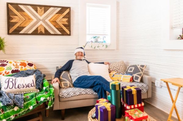 时间距离当时这个展览过去了三年,他们的3D打印房屋终于在去年底迎来了自己的第一个“流浪“主人——70岁高龄的流浪老人Tim Shea。