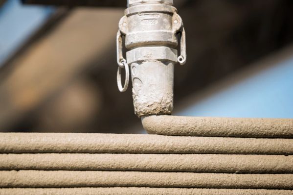 在3D打印过程中,打印机中的材料为混凝土,比美国一般房屋建造的木质房屋更坚固和防水。 打印过程就是这样按照提前设计的图纸喷挤混凝土。
