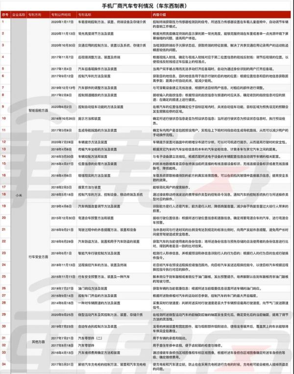不过相对华为而言,小米的短板异常明显,根据“车东西”梳理的小米汽车方面的专利情况,小米在汽车领域的研发专利主要体现在智能座舱和行车安全方面。在硬件产品甚至是汽车芯片上,小米依旧是短板,而华为在智能电动汽车行业拥有全链条技术。