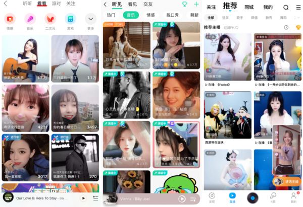从左到右依次是:网易云音乐、QQ音乐、酷狗音乐的直播界面