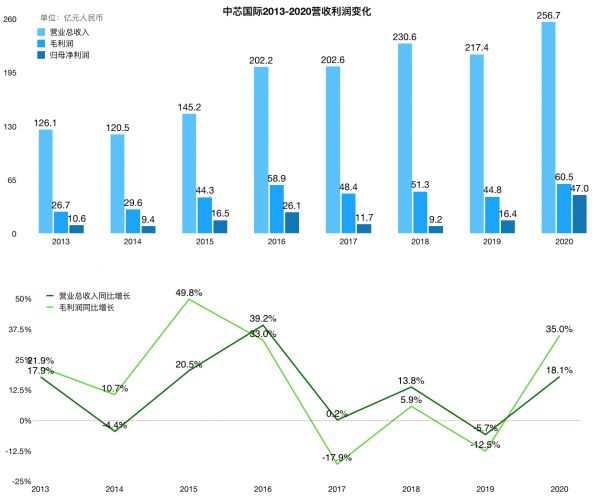 中芯国际营收利润变化 36氪制图