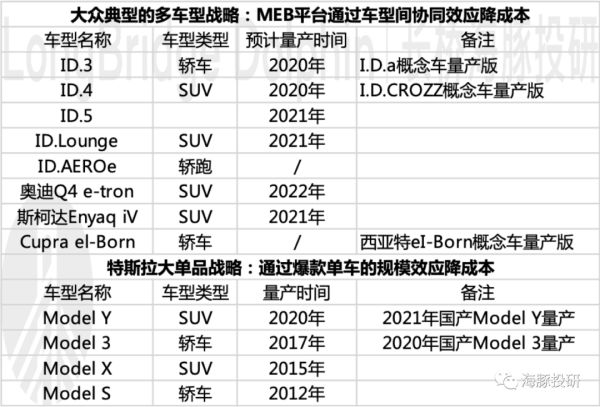 路径一是大单品策略,通过爆款单车的规模效应赚钱,典型代表是特斯拉; 路径二是多样化车型的策略,然后通过模块化造车平台发挥车型间的协同效应,实现1+1>2的效果,典型代表是大众。