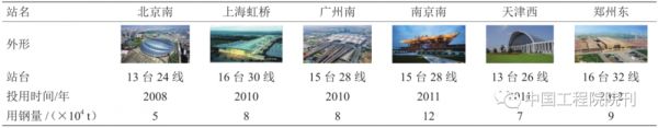 近年来,随着高速铁路的快速发展,我国的铁路车站建设也取得了长足进步,一批结构形式新颖、造型美观的车站设施相继建设完成(见表2),其中最有代表性的是南京南站和北京南站。