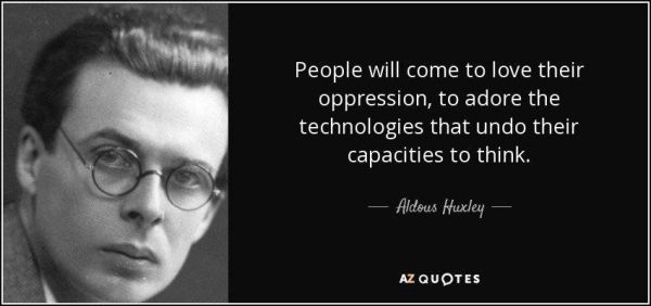 赫胥黎在1932年出版的《美丽新世界》超前地预见了科技麻痹人类的景象 / 图片来源:Google