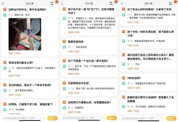 在大力智能台灯产品评论区,都是一群急切地寻找良方的父母。“这个智能台灯会不会养成学习的惰性,一有问题就求助,会不会写作业不专心,光想着玩台灯。”“孩子经常看会不会伤眼睛?可不可以玩游戏或者看视频?”“有了它能代替半个家教吗?”