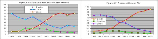 有了这两项创新之后,1985年,微软推出了专门针对Macintosh的Excel。当Lotus 1-2-3还在MS-DOS上驻足不前时,正是这种有违直觉的,跑到其竞争对手的计算机上推出产品的决定,让Excel成为了主流。