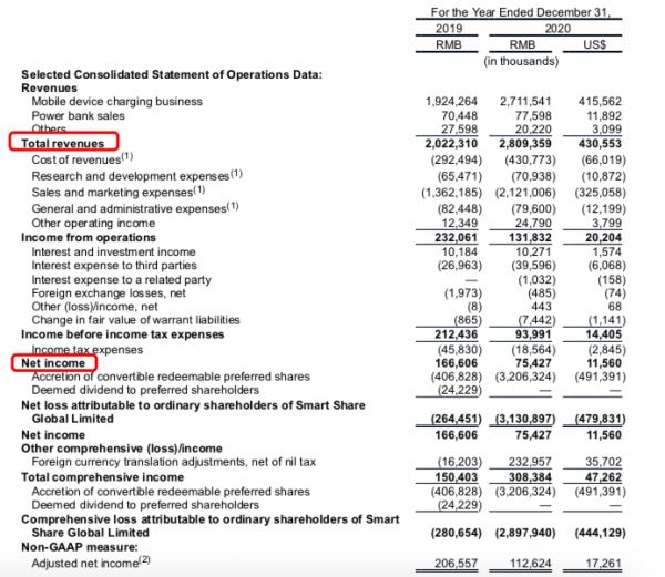 根据招股书披露,怪兽充电2020年营业收入为28.094亿元人民币,同比增长38.9%。但受疫情影响,利润骤减,2020年怪兽充电的经调整净利润为7540万元,与2019年的1.67亿元相比下降54.86%。