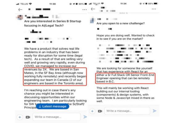 最近,沈科也找其他在加拿大的朋友打听了一下,他了解到,多伦多公司现在受远程职位冲击的情况还没有温哥华明显,主要原因可能是温哥华背靠硅谷、西雅图的地理优势,但大家都明显感觉到最近来自美国的远程职位变得更多了。