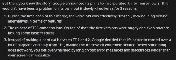https://www.reddit.com/r/MachineLearning/comments/mhrpbm/d_keras_killed_by_google/