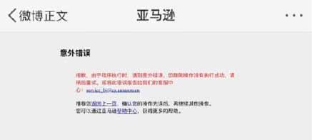 4月29日下午有网友称无法正常登陆亚马逊网站,网页上文字显示“报歉,由于程序执行时,遇到意外错误,您刚刚操作没有执行成功,请稍后重试。”另外,还有用户反映,亚马逊App也开始遇到无法正常打开的情况。