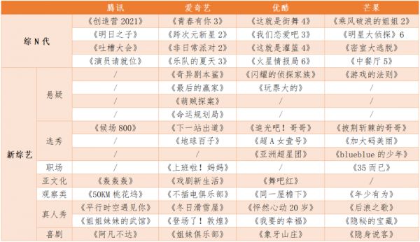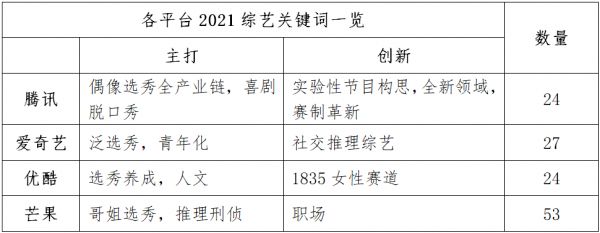 2021年腾讯预计播出综艺24部,其中综N代14部,新综艺10部,在以有着深厚观众基础的系列综艺维持基本格局的同时,坚定了差异化、创新化的升级策略。