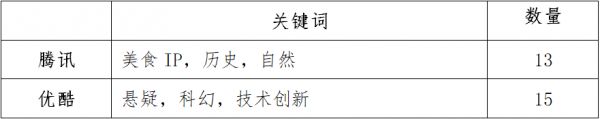 1.拓展纪录片疆域,题材多元化发展。优酷纪录片类型包括科幻探险、历史传奇、悬案剧场、美食青春、人生之问、我心归处六大类,其中悬疑剧场和美食矩阵成为优酷2021的关键发力点。