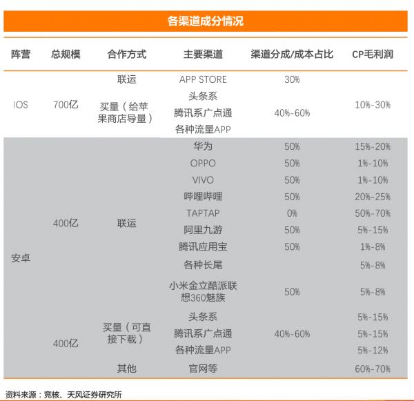 各渠道抽成比重
