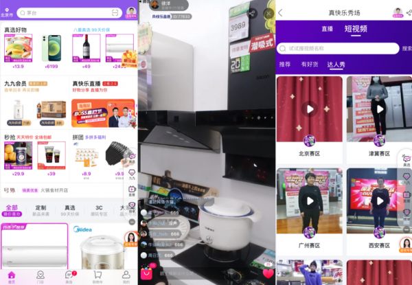 打开真快乐APP的直播版块,看到的大多是商家在店内进行直播销售,与线下卖场看到的场景无异。大部分观看人数都未过百,评论多是“666”,互动氛围较差。