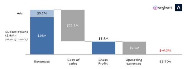 和 Spotify 一样,Anghami 虽规模大,可是从成立以来一直在亏损。不过在过去四年的努力下,该公司正在通过各种模式来增加收入,转型效果显著,不仅毛利率增加了400%,税息折旧及摊销前损失还降低了97%。2020年,Anghami 在实现3100万美元收入的前提下,把各种损失控制到了20万美元。