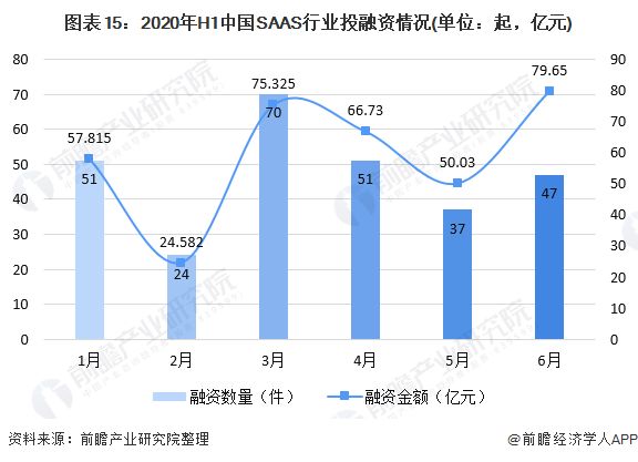 根据数据显示,2020上半年,我国SaaS行业共发生融资事件280起,总金额达354.13亿元,特别是3月份,SaaS行业融资数量达70起,金额超过75亿元。