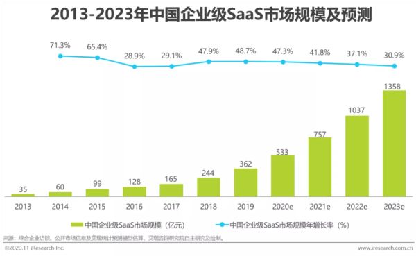 虽然SaaS早已不是新的商业模式,但随着云计算等基础设施迅速发展完善,以及产业数字化转型需求增加,SaaS市场的增速正在超出预期。