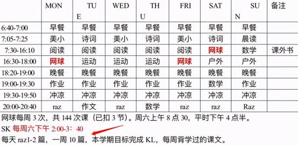 早上七点开始阅读,随后进行美术、数学、作文、阅读英语书籍等项目,直到晚上八点结束。