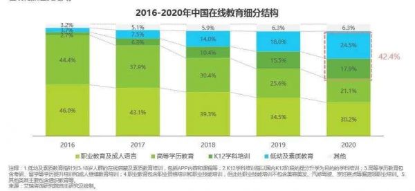 这是近年来逐渐明确的趋势:80、90后的家长们越发重视素质教育。据艾媒咨询报告显示,从2016年至2020年,低幼及素质教育占在线教育比例越来越大,已从3.7%升至24.5%。