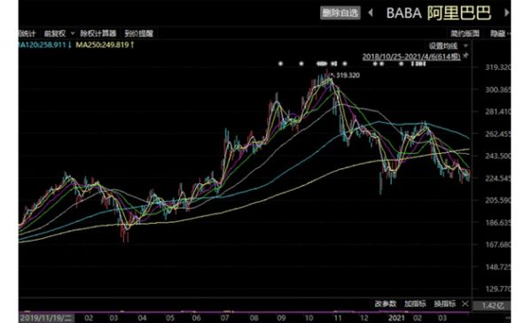 在股价下跌的同时,阿里巴巴的负面消息也频频出现。比如,去年12月因涉嫌垄断行为被立案调查,今年披露的财报显示其年活跃用户被拼多多反超等。