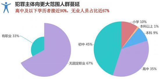 六是犯罪主体呈现“三低”特征。2020年检察机关起诉的网络犯罪案件中,未成年犯罪嫌疑人同比增长35.1%,在校学生同比增长80%;高中及以下学历占90%;无业人员占67%,犯罪主体呈现低年龄、低学历、低收入趋势。