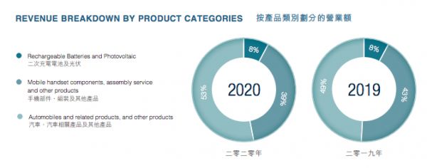 从2019年至2020年,手机部件业务的营收占比由43%降至39%,而汽车相关业务由49%升至53%。