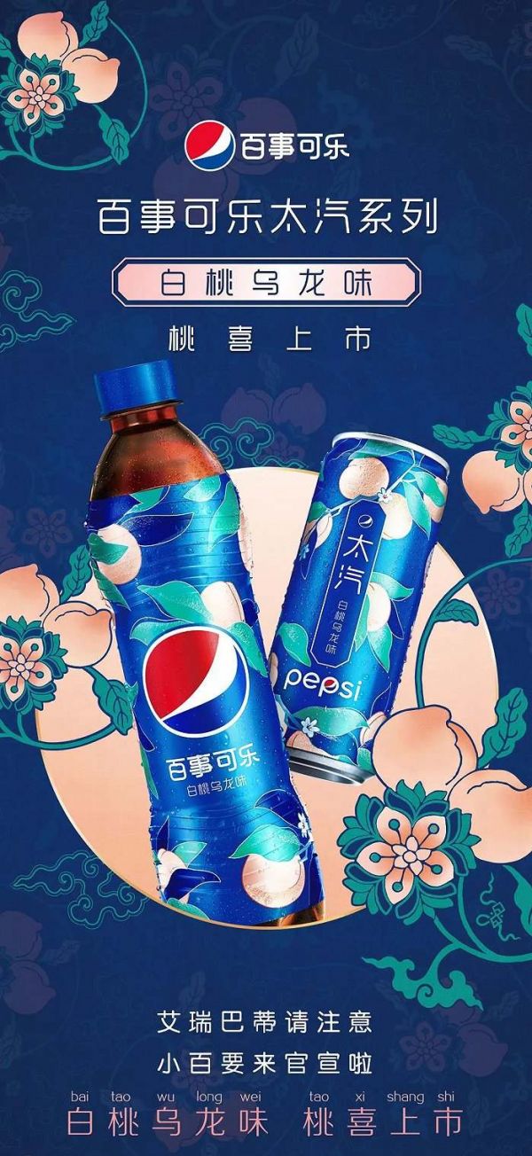 百事可乐刚刚推出了“太汽”系列白桃乌龙味可乐;农夫山泉最近的几款新品气泡水产品中,就包括“拂晓白桃味”;可口可乐旗下的AH!HA!小宇宙气泡水正式进入中国市场,其中之一就是白桃乌龙口味;华润怡宝的低浓度果汁饮料,也增加了“桃桃假日”新品,标注称“口味精选优质国产白桃汁”。
