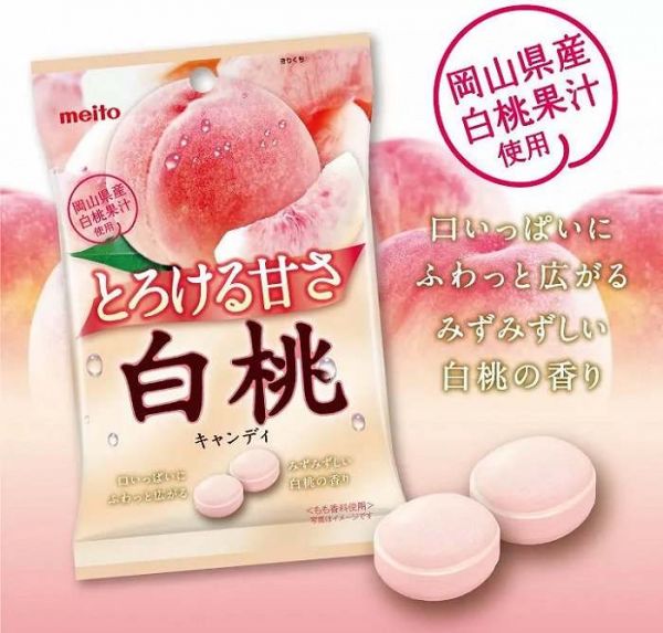 白桃口味在国内的流行多少是受了日本文化的影响。白桃是水蜜桃的一种,在日本,以冈山县出产的白桃最为知名。白桃的果实比较饱满圆润,表皮颜色粉白,果肉呈现出乳白色,香气浓郁,口感脆甜。