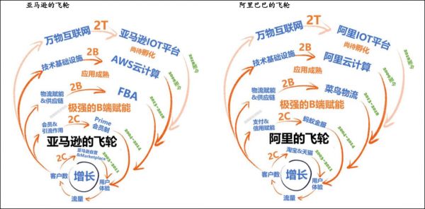 图2:亚马逊和阿里的飞轮;来源:西南证券